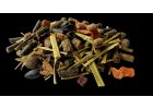 Složení: ječmen, kukuřice, vojtěška, sušená jablka (20%), mrkev (6%), lněné semínko (2%), řepkový olej (0,2%). Analytické složky: hrubý protein 11%, obsah tuku 3,5%,hrubá vláknina 9%, hrubý popel 3,5%, vlhkost 10%, Omega-3 mastné kyseliny 0,3%.