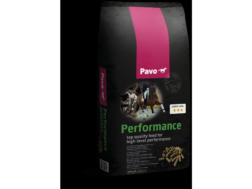 Pavo Performance byl speciálně vyvinut tak, aby poskytoval sportovním koním maximální vytrvalost a špičkovou kondici. Koně, kteří musí podávat nejvyšší výkon (energetická úroveň 3), mají mimo jiné zvýšenou potřebu energie a bílkovin. Unikátní složení tohoto krmiva umožní špičkovým sportovním koním získávat energii hlavně pro dlouhotrvající zátěž. Zdrojem energie je kvalitní vláknina a tuky, místo cukru a škrobů. Poskytne vašemu vrcholovému sportovci všechny ingredience, které potřebuje k optimálnímu výkonu, aniž by hrozilo jeho zakyselení!