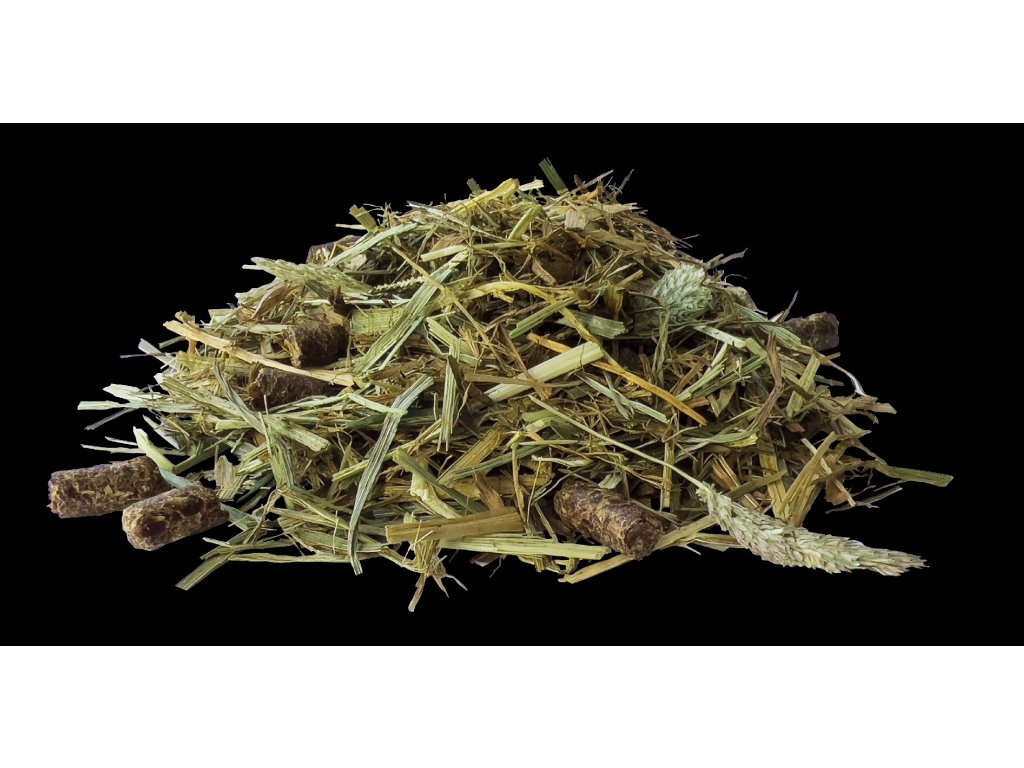 - Částečná nebo úplná náhrada normálního objemového krmiva (seno, senáž)
